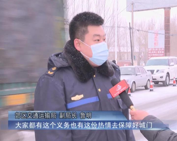 郊区交通运输局 副局长 鲁明:“大家都很积极地投入到工作中,因为现在天气非常冷,大家在外面都最大限度地去做工作,大家都热情很高,这项工作是一项保卫佳木斯二百多万市民的生命安全很重要的一项责任,大家都有这个义务也有这份热情去保障好城门。”