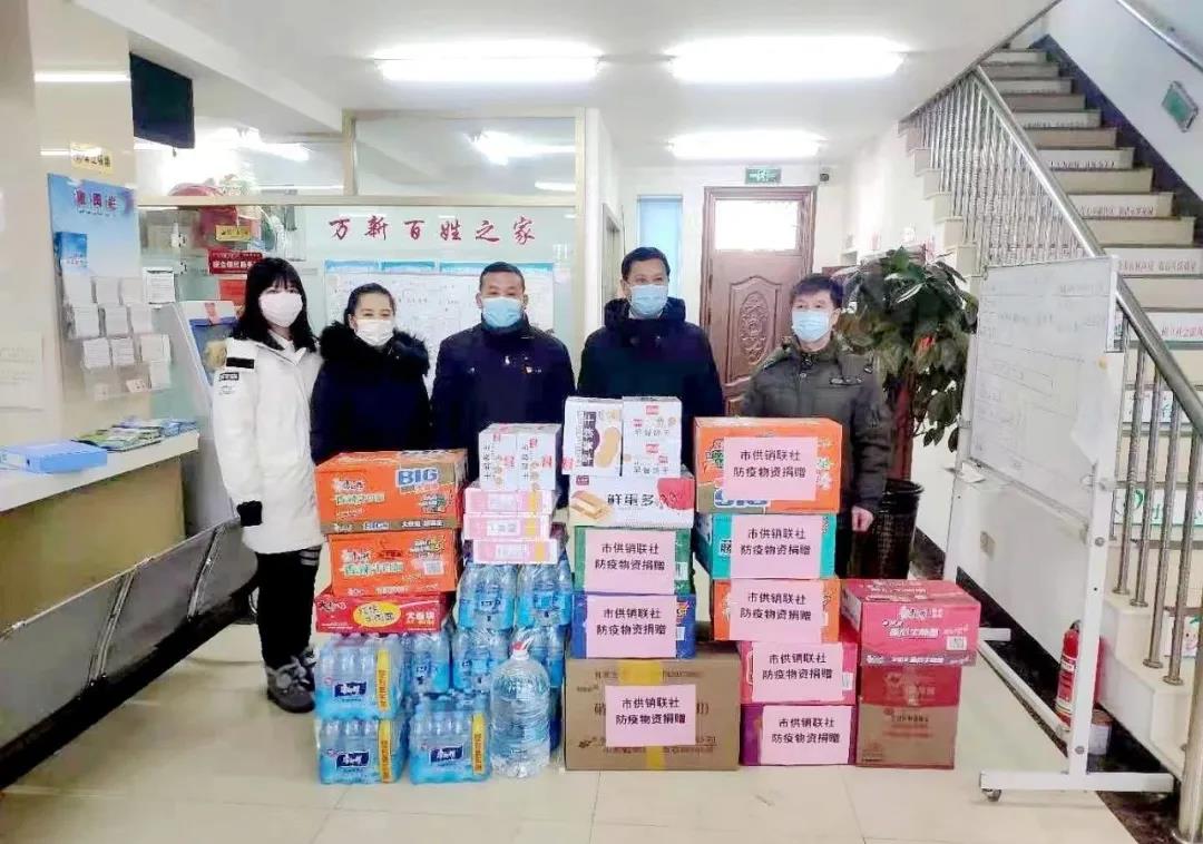 1月19日,市供销合作社联合社的机关干部们,携带一次性医用口罩、方便面、火腿肠、矿泉水等10余种抗疫物资和消杀物品来到友谊街道万新社区看望和慰问奋战在一线的社区工作者和网格员。
