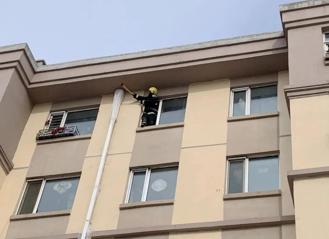 网格员与民警在要清理挂冰的周边区域提醒居民群众绕路而行,同时,物业人员与居民沟通,进入居民家中,借窗口位置协助消防人员进行除冰工作,经过多方的共同努力,现结冰排水管道都已清理完毕。
