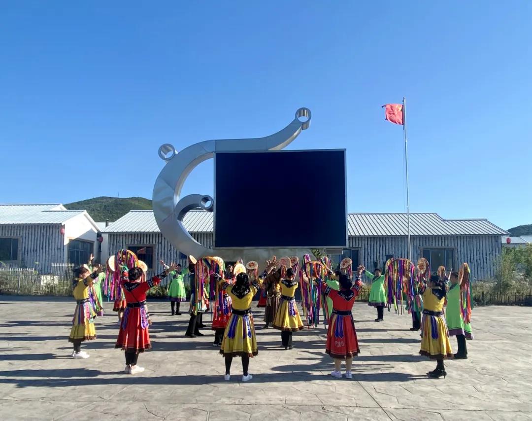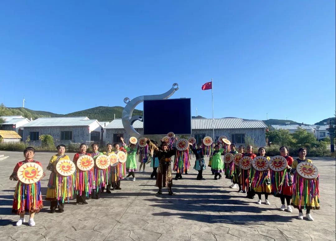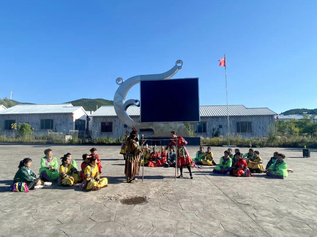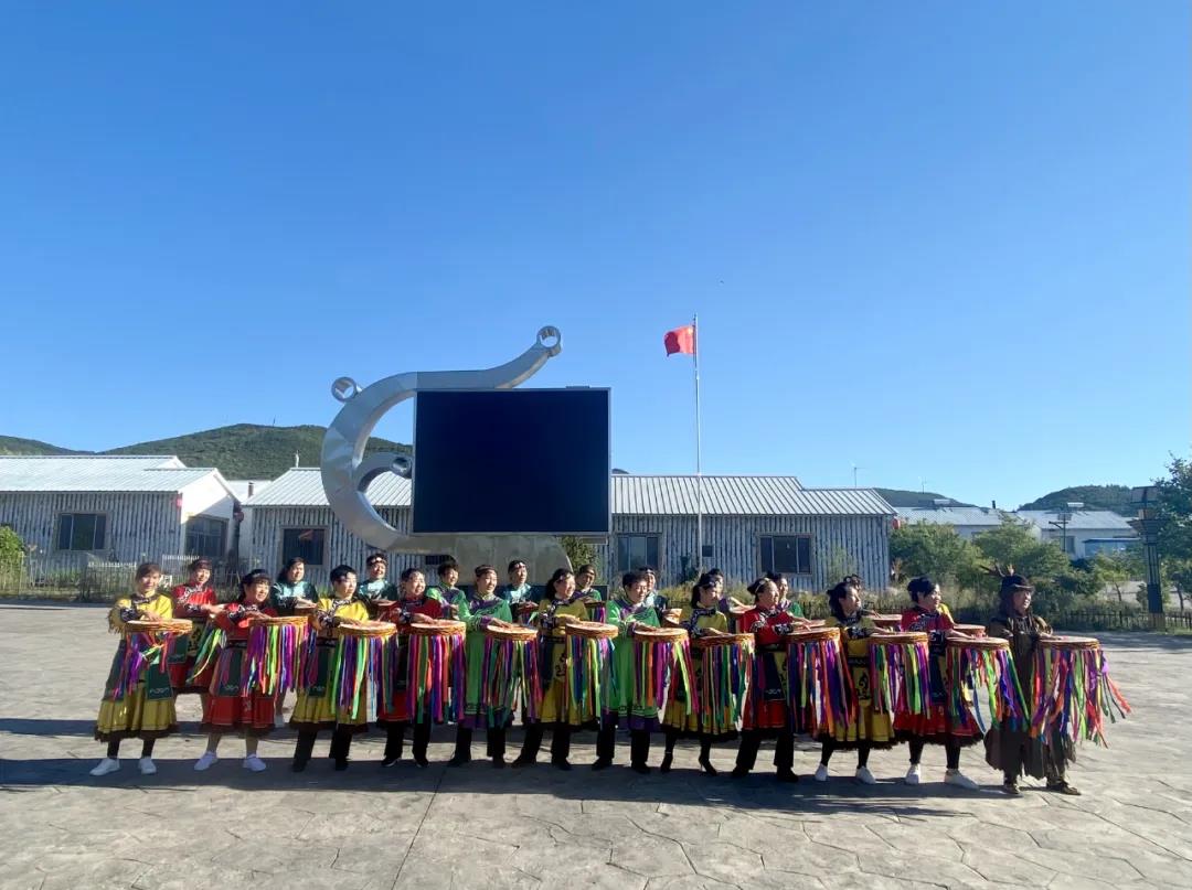 现场身着节日盛装的赫哲族村民聚集到赫哲村广场上,敲起鱼皮鼓,跳起萨满舞,唱起嫁令阔,说起伊玛堪,大家载歌载舞,用舞姿传递热情,用笑容展现喜悦。阳光映红了一张张幸福的脸庞,也映红了赫哲人的美好未来。赫哲村民的演出展现了赫哲族特有的文化魅力和人民勤劳勇敢、民族团结的精神风貌。