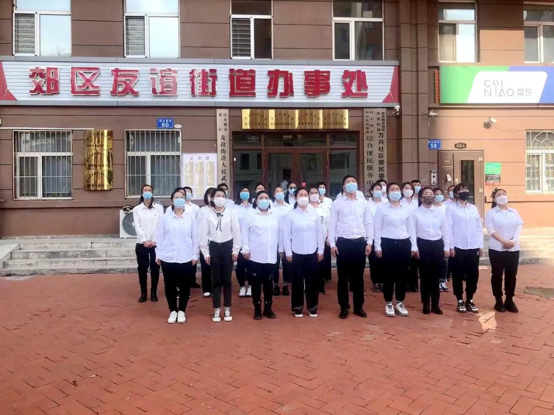 友谊街道党工委班子成员、机关党支部全体党员、社区工作者、辖区物业工作人员面向五星红旗肃立行注目礼。当雄壮嘹亮的国歌奏响,鲜艳的五星红旗高高飘扬,每个人都热血沸腾,爱国情感也油然而生。与此同时,友谊街道六个社区的商户、企业,在辖区内悬挂上红旗,默默为祖国母亲献上生日的祝福 ,共同祝愿我们伟大的祖国繁荣富强。