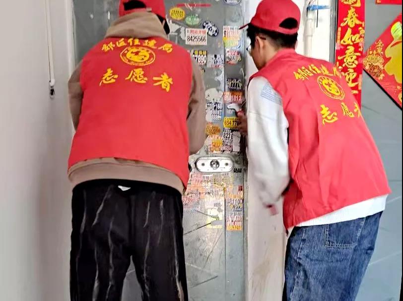 活动中,志愿者们身着“红马甲”,秉承文明实践、服务群众的理念,充分发挥不怕累、不怕脏的奉献精神,分工协作、相互配合,细心清洁楼道的垃圾、墙面的小广告等,做到不留死角,清洁一处、靓丽一处。