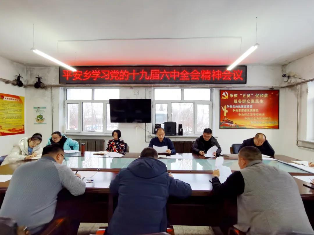 平安乡第一时间召开理论学习中心组会议,传达学习《中国共产党第十九届中央委员会第六次全体会议公报》,并作交流研讨。要求党员干部在今后一个时期要将学习贯彻党的十九届六中全会精神与当前各项重点工作结合起来,从党的百年奋斗重大意义和历史经验中汲取力量,在疫情防控、乡村振兴、安全生产、信访维稳等重点工作中担当作为,以实际行动践行初心使命,答好时代考卷。