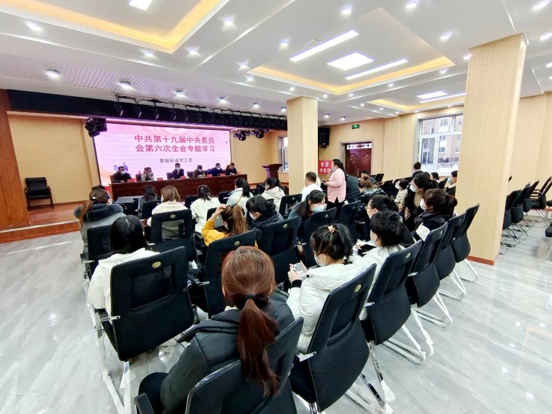 党的十九届六中全会召开以来,英俊街道广泛开展全会精神学习宣讲,把学习宣传贯彻全会精神作为当前和今后一个时期的重大政治任务,以高度的政治责任感,精心安排部署、统筹推动落实,引导街道广大党员、干部、群众领会和把握全会精神的重大意义、核心要义和实践要求,推动党史学习教育走向深入。