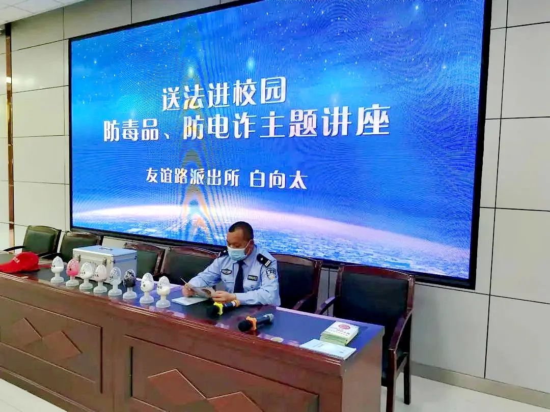 活动中,友谊路派出所通过ppt和现场讲解的方式,针对学生防范意识比较薄弱的特点,以发生在身边的真实案例,深入浅出的为在座师生上了一堂生动的预防电信网络诈骗和禁毒宣传教育专题讲座,详细讲解了当前新型诈骗种类和预防方式方法,提醒师生注意防范游戏充值类诈骗。同时,通过实物展示的方式,介绍了新型毒品的种类和识别方法。并围绕毒品犯罪的危害性、未成年人涉毒的诱因以及如何识毒拒毒等方面进行了详细讲解,教育引导广大师生要牢固树立正确的人生观和价值观,杜绝一切涉毒违法犯罪行为。