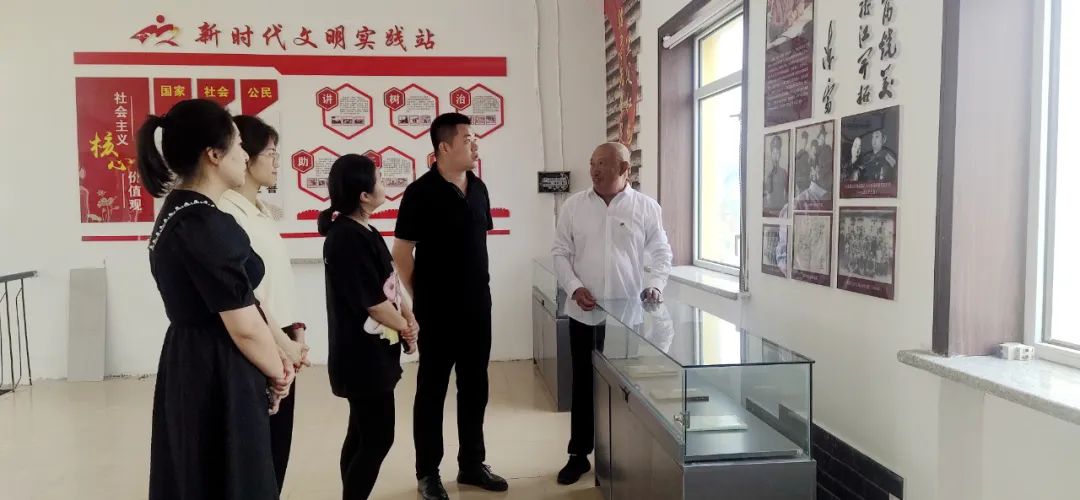 在群胜村委会二楼,机关党支部书记带领群胜村支部成员及新入职的青年党员,共同参观学习老革命家陈雷同志的先进事迹。群胜村老党员姜英山,作为陈雷同志的后人,向在场的青年党员干部讲述了群胜乡与老革命家陈雷同志的渊源,以及陈雷同志参与东北抗战的光辉历程,为党员干部们上了一堂生动的党课。