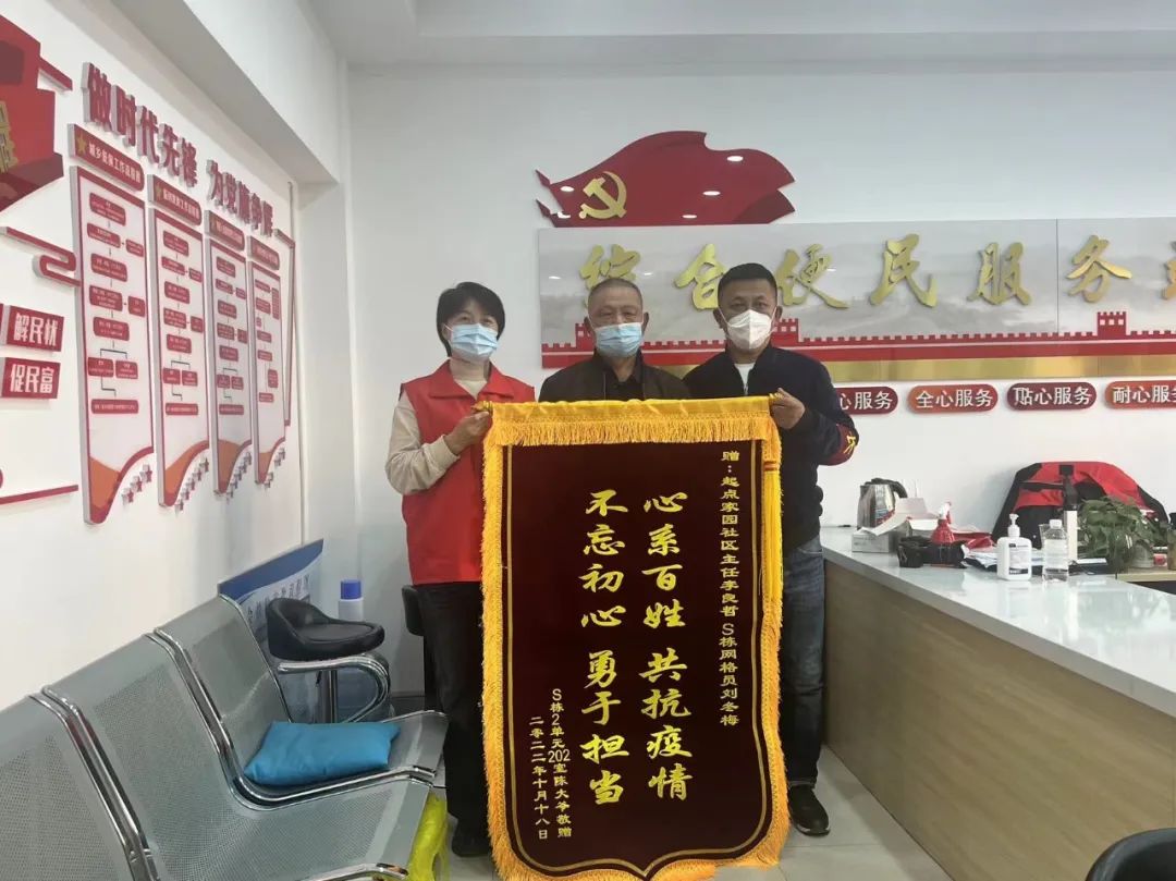 19日,西郊华城洋房B10栋居民代表来到云环街道云环社区,为社区和网格员献上鲜艳的锦旗,对疫情期间不分昼夜、冲锋在前、坚守一线的全体社区工作人员表示衷心的敬意与感谢。