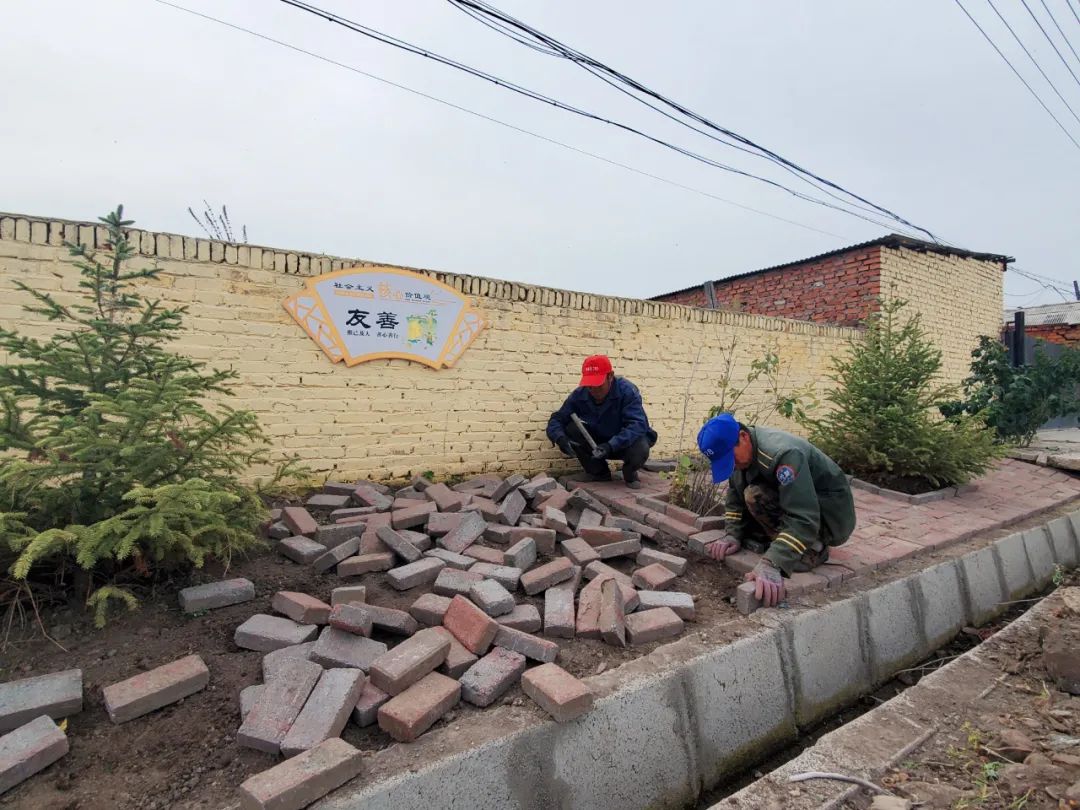 群胜村组织10余名具备劳动能力的脱贫户对村屯两侧铺设面包砖。有人负责运砖,有人负责吊线铺砖,有人负责整修树床,有序的背后是周密的组织,群胜村先后召开了党支部委员会、党员大会、村民代表会议,确立了利用保洁公益岗开展环境整治的具体思路,脱贫户变身保洁员既美化了村屯环境,又带动了脱贫户增收。
