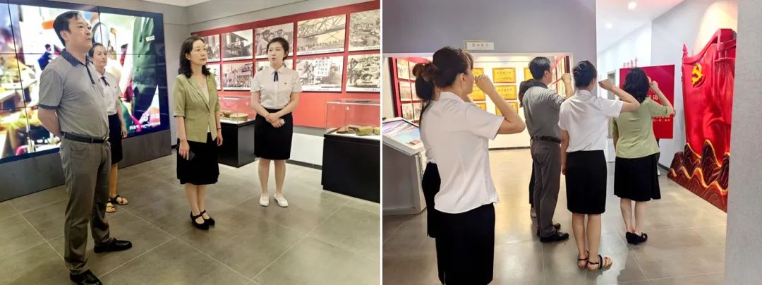 活动当天,佳木斯市社会科学界联合会党组书记、主席张红等党员干部来到荣军社区国防教育微展馆进行参观,通过现场讲解,一件件史实,一张张照片,一个个模型,把党员同志们带回了那条艰苦卓绝革命路,重温了那段光荣历史。党员同志们再次被党的革命精神所震撼,感受到了伟大信仰的召唤。随后党员同志们重温入党誓词,面对庄严的党旗全体成员用饱满的热情、昂扬的斗志表达出对党的忠心。