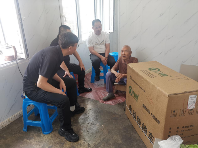 近日,优抚对象刘怀玉家迎来一份“特殊”的礼物。大来镇党委及区退役军人事务局将崭新的轮椅送到刘怀玉老人家中。刘怀玉,现年93岁,是残疾退役军人,曾立三等功一次,1949年参加开国大典,1951年参加朝鲜战争,2011年确诊为骨转移癌,行动不便亟需轮椅。获悉这一情形后,大来镇党委及区退役军人事务局多次上门走访慰问,并立即向上级部门申请,将轮椅送到了老人家中,并进行现场指导安装,讲解使用方法和注意事项,同时详细询问老人的日常起居和身体健康情况,嘱咐他一定要照顾好身体,保持良好心态,有任何困难随时联系镇村干部。“谢谢你们来看我,还给我送来新的轮椅,以后出行就方便多了。感谢党和政府的好政策,感谢你们记挂着我们!”刘怀玉高兴地说道。