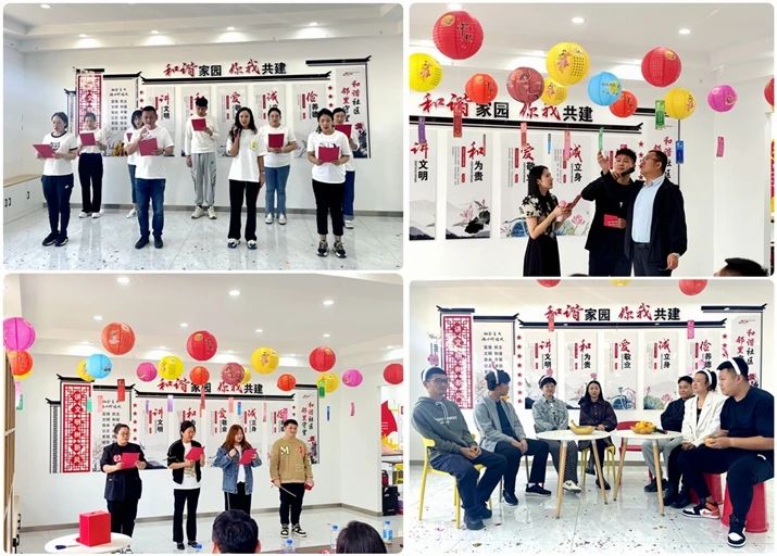 灯映月圆歌盛世,百花齐放庆团圆,灯谜自古是中华文明智慧的结晶。活动当日,一排排鲜艳的灯笼卡片高高挂起,节日氛围感十足。灯谜内容生动有趣,内涵丰富,兼具趣味性和知识性。现场观众们在灯谜之下或深思熟虑,或与人互动,或百思破题,或才思泉涌......通过灯谜上的小知识,也让现场观众更加了解中秋节的文化,活跃节日气氛。