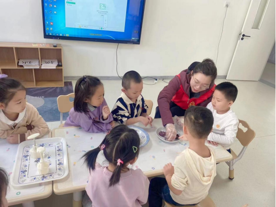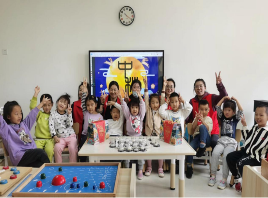 随后,社区工作人员来到辖区俊贤儿童之家,与孩子们一起完成冰皮月饼DIY手工课程。在志愿者的指导下,一颗小小的月饼在手中成型,志愿者们邀请孩子们一起品尝月饼、唱歌、跳舞。
