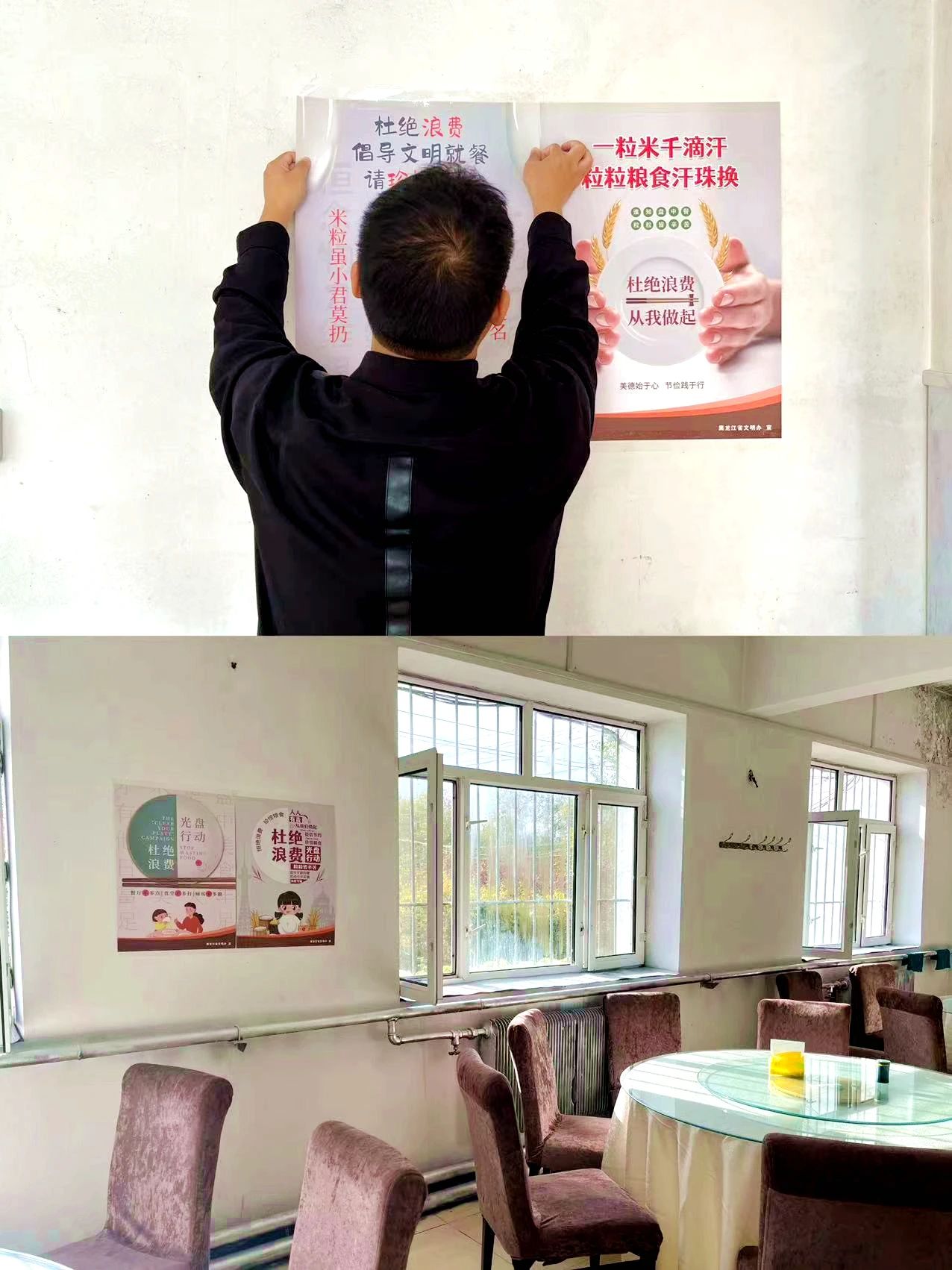 平安乡志愿者们在食堂张贴“杜绝浪费”“光盘行动”等宣传海报,号召就餐人员做到文明就餐,不浪费粮食、养成良好餐饮习惯,拒绝舌尖上的浪费。同时,志愿者们深入村屯为村民发放“厉行节约 反对浪费”倡议书及宣传单,在村内宣传栏张贴宣传海报,向村民讲解勤俭节约对个人和社会发展的重要性,引导村民们坚持从小事做起、从自身做起,把“光盘行动”作为一种时尚,养成勤俭节约的好习惯,做文明行动的宣传者、践行者和监督者。