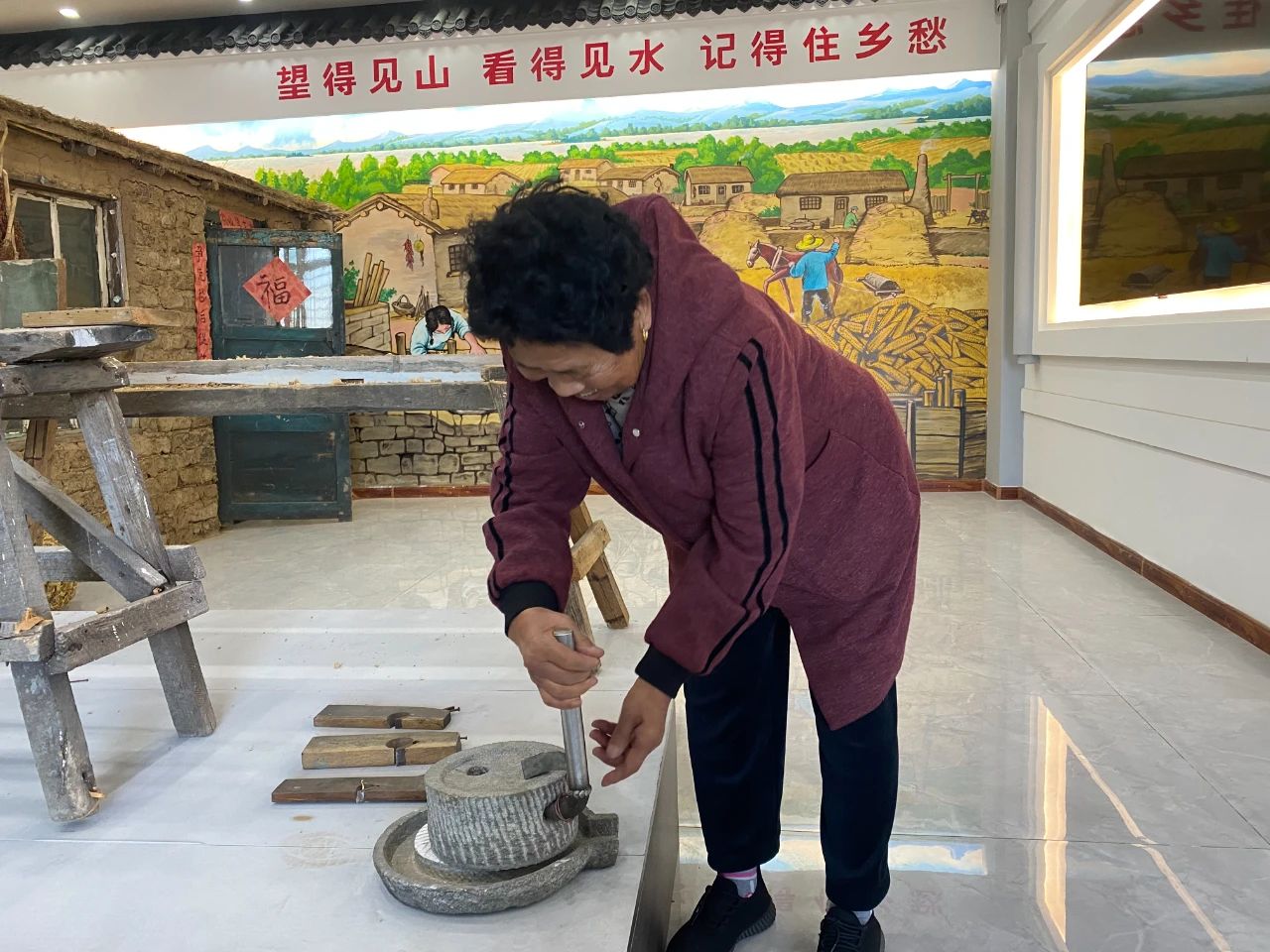 活动中,长春村老党支部书记李文阁同志为到场的老年人介绍乡愁馆,并为大家送上节日祝福,通过收集使用过的老物件,用集中陈列的方式展示其生活生产、民风民俗、乡村变迁等内容。把乡愁馆承载着的村民生活历史,形成文化传承的精神家园,让独特的乡愁文化得以延续。馆内保留的石磨、竹篮、农用器具等老物件,以陈列的方式让老人们在“乡愁”中感悟社会进步,在“记忆”中传承乡土文化。一位80岁的老人抚摸着石磨说:“这和我年轻时用的石磨一样啊!看着这些老物件,就想起了年轻时的自己,现在日子越来越好了,我们也不像以前那么劳累了。”