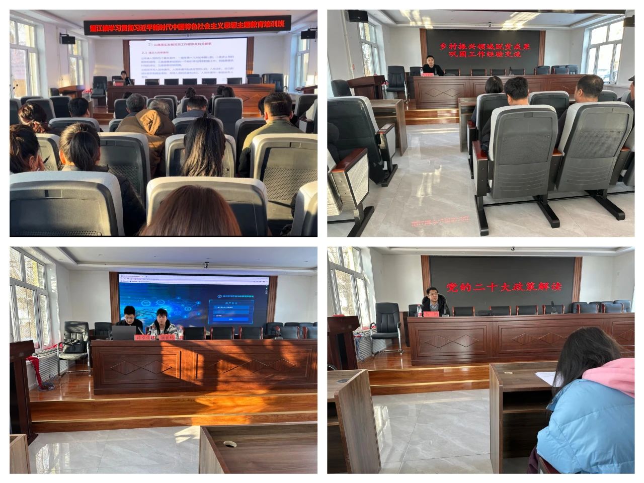 本次培训主要突出精准务实,坚持把“学思想”作为首位任务,采取理论教学、案例教学、专题辅导相结合的方式进行,围绕打造“政治坚定、理念先进、本领过硬”的农村干部队伍目标,把干部教育培训与基层中心工作紧密结合,选择思想政治、农村党建、乡村振兴、农村政策、廉政教育等内容,邀请了区委组织部、区乡村振兴局、区网格办具有扎实理论基础和丰富实践经验的专业人员进行专题知识辅导授课,同时驻村书记及镇主要领导干部就党的二十大报告进行解读解析。此次培训有技术层面,又有思想内涵,是以科学和发展的眼光开展乡村振兴和干部队伍建设的一次大提升、大转变。