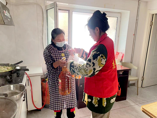 活动中,社区工作人员及志愿者为老人带去了米、面、油等生活所需用品,与老人唠家常,了解老人的生活困难和子女情况,并叮嘱老热雪天外出注意安全,同时提醒老人在家注意用气、用水、用电安全。