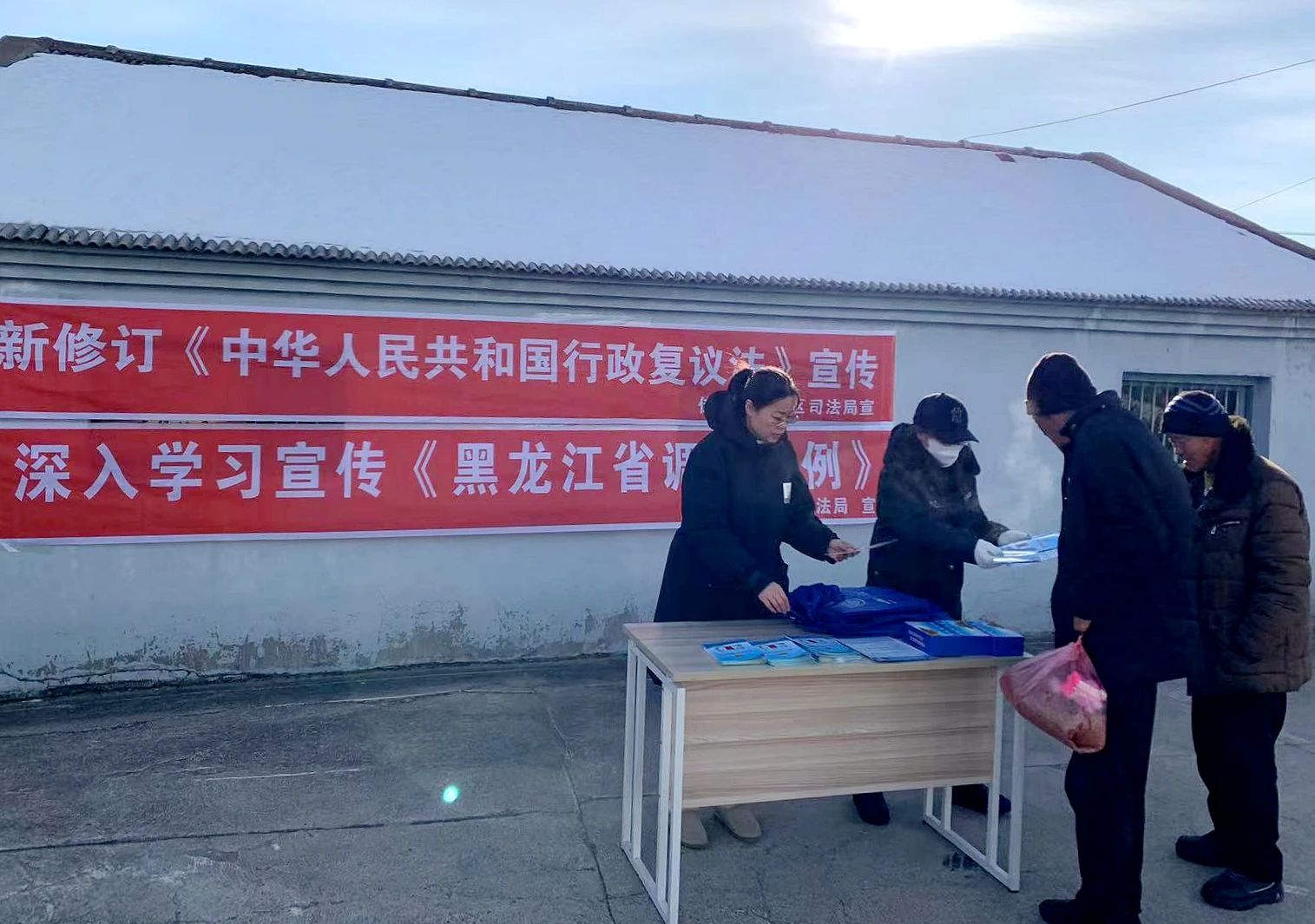 为进一步深入贯彻习近平法治思想,推进镇、村基层在法治建设中的前端作用,提升基层社会治理效能,维护基层社会和谐稳定,12月12日,郊区司法局西格木司法所联合镇综治中心开展了“法律大集”活动,重点宣传了新修订的《中华人民共和国行政复议法》和新颁布的《黑龙江省调解条例》。