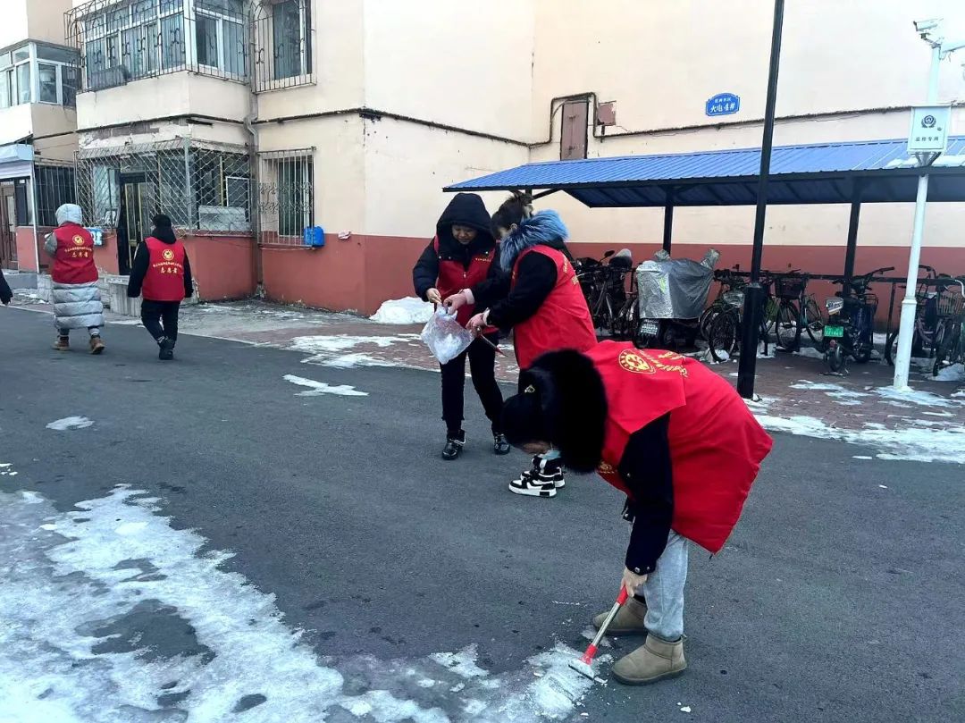 志愿者们带着清理工具,针对小区内楼道墙体、台阶和楼梯扶手上的“小广告”进行集中清理,并倡议居民对乱涂乱画的行为要及时制止,共同维护小区环境。同时,志愿者们还清理了小区内积雪和零散垃圾。