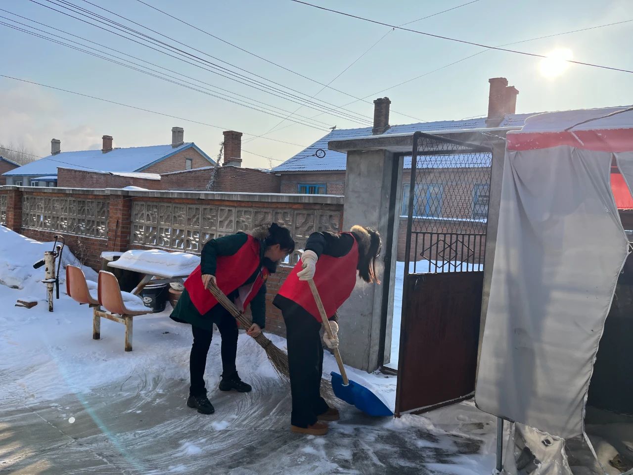 活动中,志愿者们对房屋院内外、巷道出入口等重点区域开展清扫,志愿者们不畏严寒,仔细地清理院内的每一处积雪,为留守在家的老年人和特殊人群清扫出一条安全的道路,为他们排忧解难。虽然天气寒冷,但大家的热情丝毫不减,相互配合、齐心协力、干劲十足,一件件红马甲成为了冰天雪地里的一道靓丽的风景线。积雪清扫完后,志愿者还叮嘱老人们和特殊人情要注意添衣保暖,如果有什么困难,要及时反应,志愿者会为他们提供力所能及的帮助。受助人群纷纷表示,感谢党和政府的关怀,被大家关心和牵挂,感觉内心很温暖。