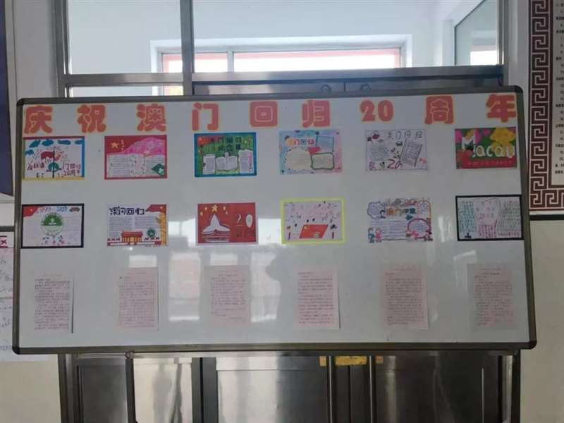 各班开展主题班会,学生们观看有关澳门的图片、视频、唱《七子之歌》,老师为学生们讲解澳门历史,让他们了解澳门的过去、现在和将来,了解了“一国两制 ”在澳门的成功实践,及回归二十年来澳门翻天覆地的变化。