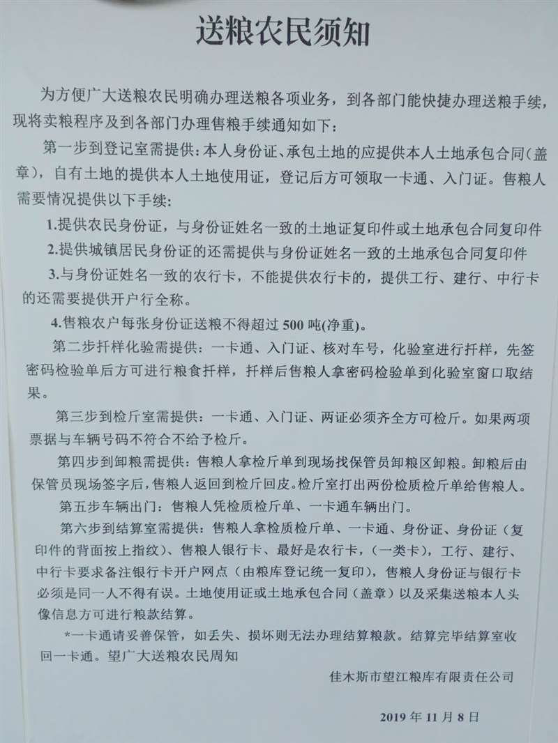 同时,为了方便送粮农民明确办理送粮各项业务,望江粮库特制定了《送粮农民须知》,将售粮、送粮流程标注清楚,防止疫情期间农民多次来往而造成不必要的交叉感染。