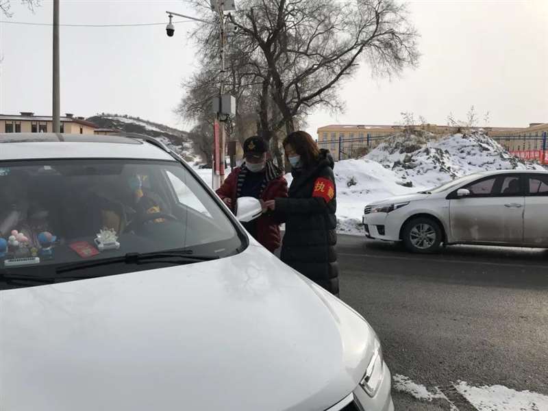 她是村里疫情防控的守门员。她说:“一定要守住村口,不能让疫情进村。”她同村里的党员干部一起,在寒风凛冽的监测卡点值守,对出入人员严格把关,进行易登记,测体温,守住全村百姓的安全防线。