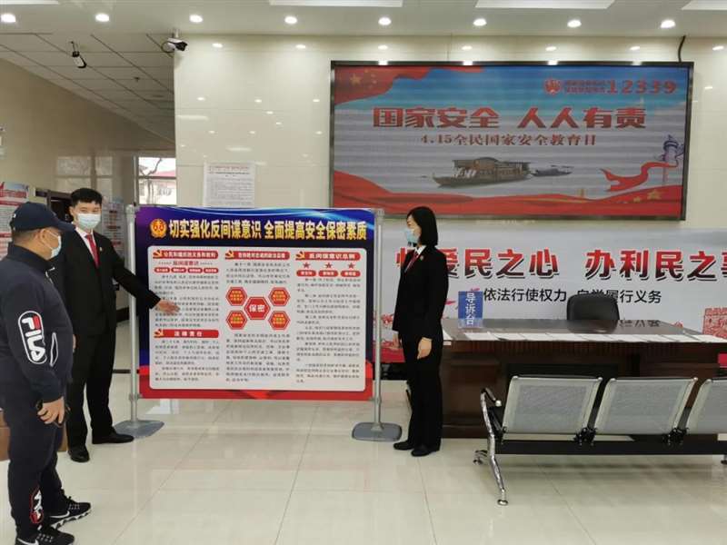 为提高全民国家安全法治意识,营造维护国家安全的浓厚法治氛围,结合典型案例加大以案普法宣传力度,4月13日,佳木斯市郊区人民法院在诉讼服务中心开展国家安全教育日法制宣传活动,通过设立宣传台、电子显示屏滚动播放宣传标语、发放国家安全教育宣传资料、现场咨询讲解等形式向人民群众深入宣传国家安全法、反间谍法。同时紧紧围绕依法防控新冠肺炎疫情,广泛宣传传染病防治法、突发事件应对法、野生动物保护法等法律法规,并现场解答群众提出的各种法律问题。
