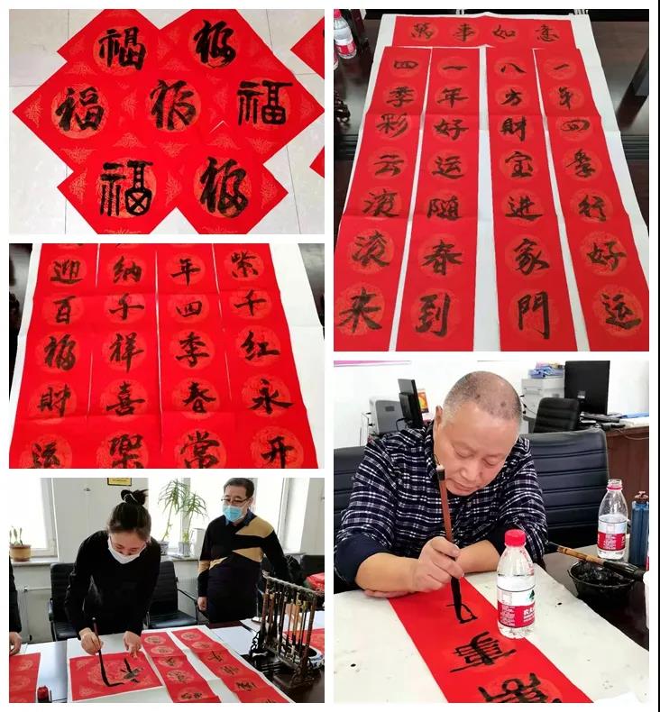 今年根据疫情防控需要,活动形式有所调整,由书法爱好者们在职工图书室事先写好春联,有序、分批地开展送春联送祝福活动。