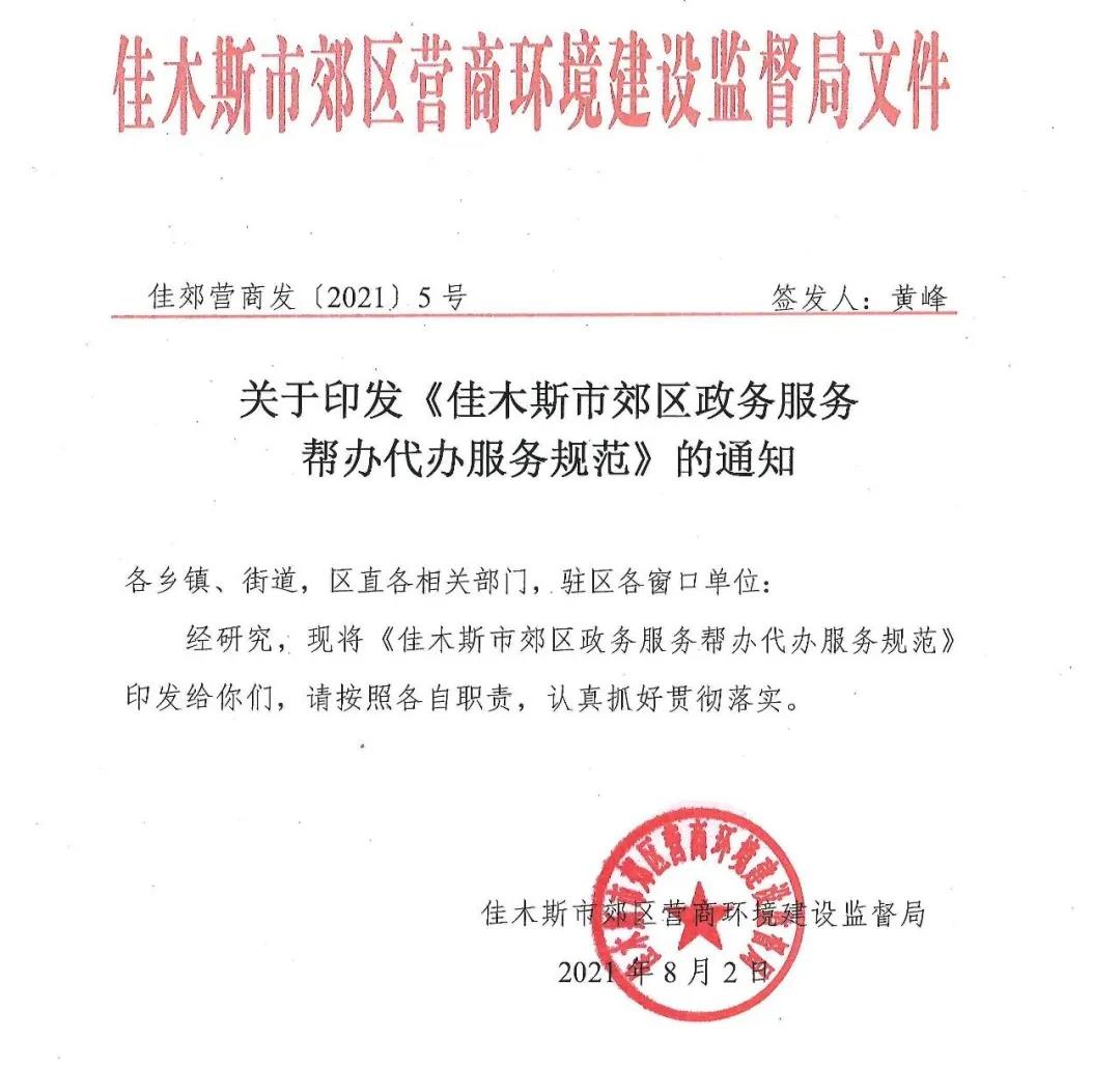 为进一步转变工作作风,提升帮办代办服务水平,打造高效便民的政务服务平台,郊区政务服务中心拟定了《佳木斯市郊区政务服务帮办代办服务规范》,经研究讨论和试运行后在郊区实行。