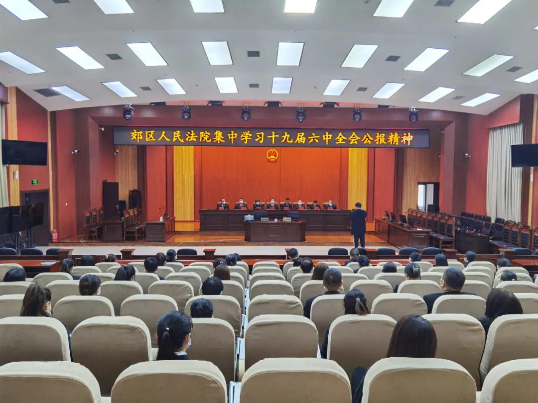 为深入学习贯彻党的十九届六中全会精神实质和丰富内涵,全面准确领会党的十九届六中全会精神的思想精髓,近日,郊区人民法院组织召开全院干警大会,集中学习十九届六中全会精神。