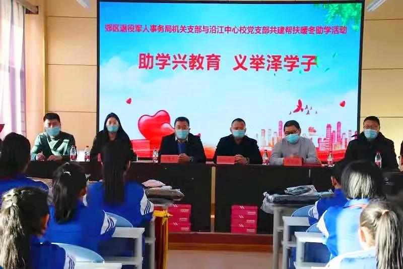12月17日,郊区退役军人事务局机关支部一行来到沿江中心校开展党支部共建帮扶助学活动,以实际行动关爱学生成长。