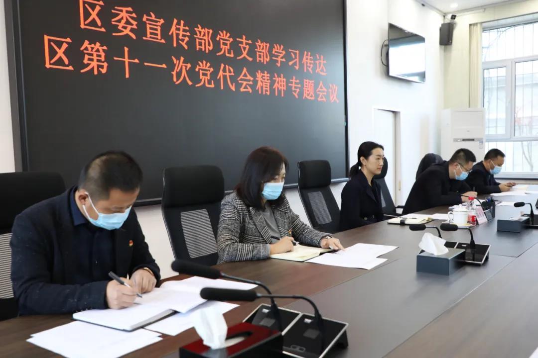 12月24日,区委宣传部党支部召开专题会议传达学习区第十一次党代会精神,区委常委、宣传部部长顾玉雪以普通党员身份参加学习并对下步工作进行了全面安排部署。