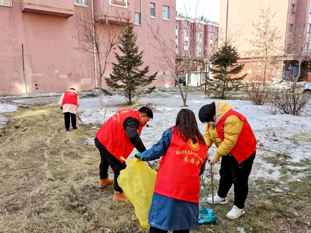 活动中,志愿者们身着红色马甲,手持清扫工具,对积雪、垃圾、道边残土进行了清理。同时,向来往居民宣传文明理念、普及环境保护知识、解读垃圾分类常识。
