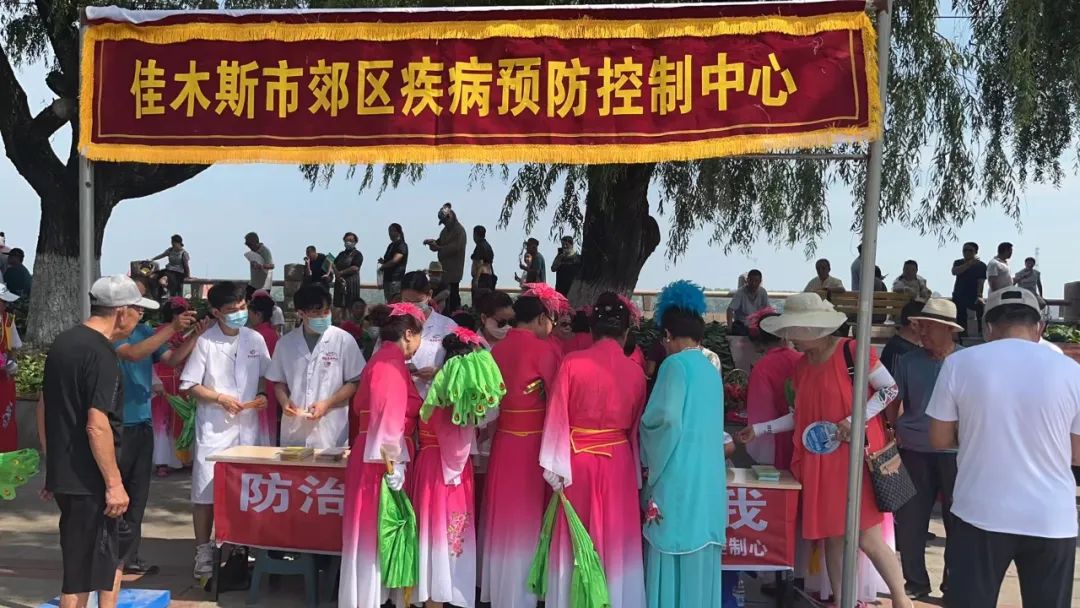 在市沿江公园,区疾控中心通过设立咨询台、悬挂“防治肝炎、健康你我”宣传条幅、发放相关宣传单、宣传袋等形式,发放传单400余份,宣传袋200余个,并且紧紧围绕“积极预防、主动检测、规范治疗”的宣传口号,向广大群众宣传讲解相关预防肝炎知识。