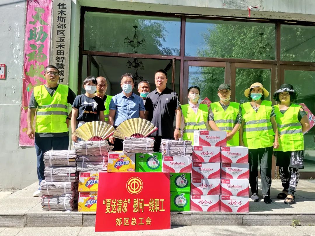 区总工会来到佳木斯市骥驰制造有限公司、佳木斯市玉禾田智慧城市运营有限公司、佳木斯市佳天德颐有限公司(佳天大市场),为一线职工们送去了矿泉水、红茶、绿茶、扇子等慰问品,让他们在炎炎夏日中感受到了区委、区政府的关怀,以及工会“娘家人”对职工的关爱。