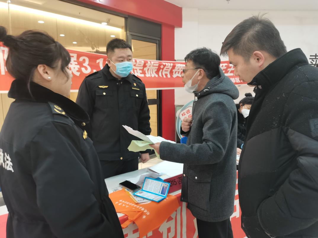 在佳西大润发超市设点开展服务活动,现场接受群众咨询、投诉,工作人员向消费者宣传《消费者权益保护法》《食品安全法》《产品质量法》等消费维权方面的法律法规以及《质量强国建设纲要》《国家标准化发展纲要》;通过发放宣传手册、图版展示等方式向广大群众宣传消费维权、防范传销识假辨假等知识,提高消费者识假辨假、维护自身权益的意识和能力。