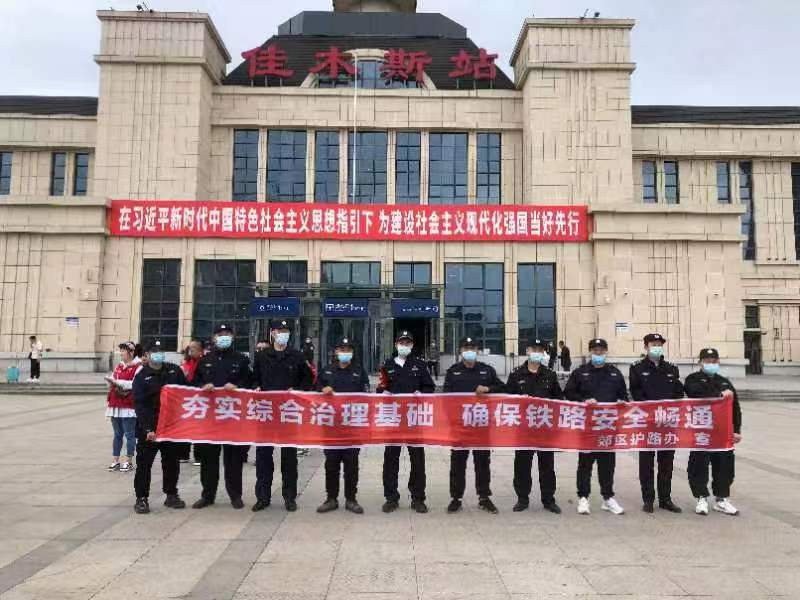 26日上午,在佳木斯火车站广场和辖区重点铁路沿线,以《黑龙江铁路安全管理规定》、《致铁路沿线居民们的一封信》、《铁路护路安全知识》等法律法规为重点,活动现场设立条幅标语、发放宣传单及纪念品,面向市民宣传讲解铁路相关法律法规和铁路运输安全常识,引导和教育群众自觉遵守铁路周边防护秩序,积极参与到铁路护路联防宣传中来,提高居民群众在铁路沿线安全防范意识,并对群众咨询问题进行解答。