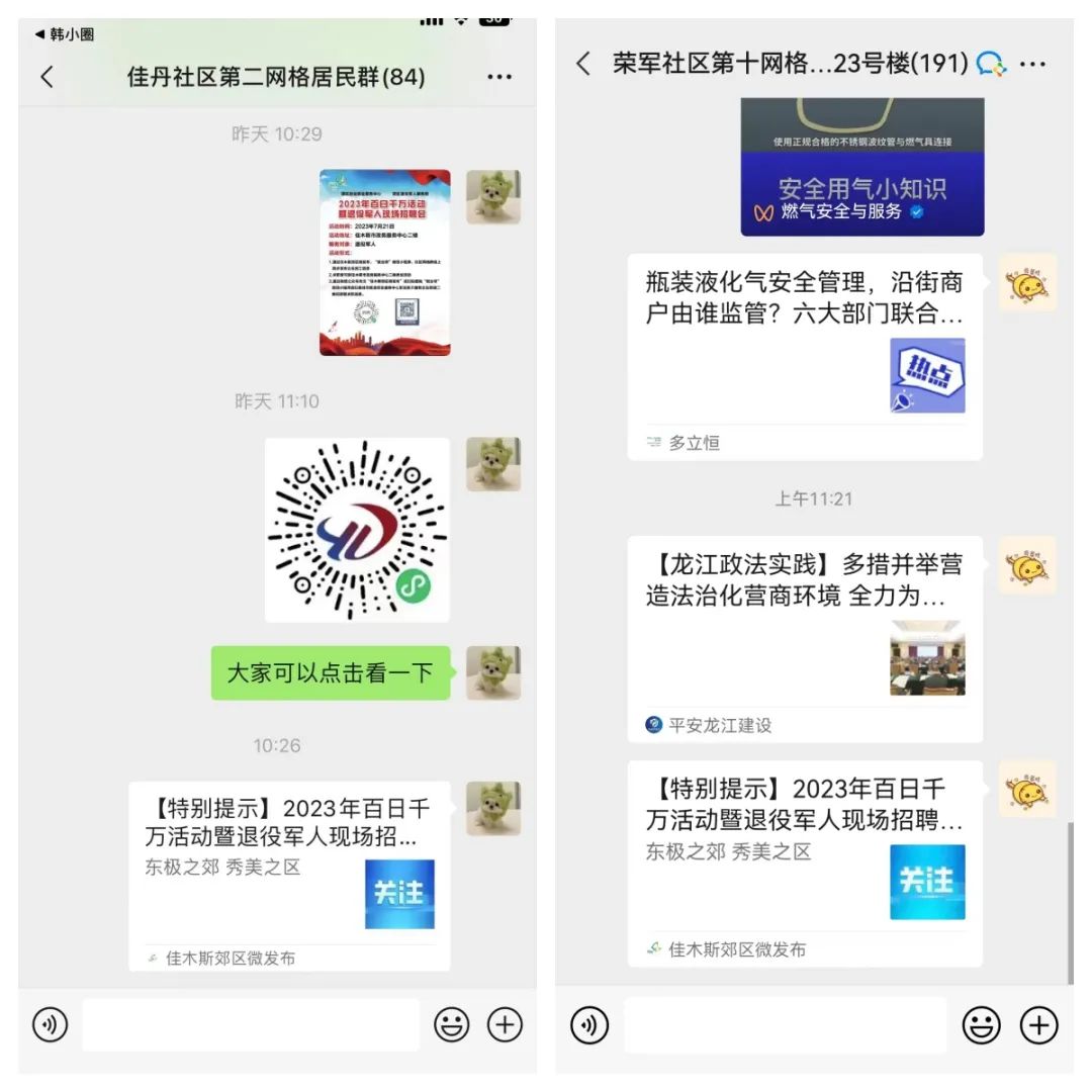 举办线下招聘会的同时线上同步发布招聘信息,活动期间求职者可通过佳木斯郊区微发布、“就业帮”微信小程序、社区网格群、扫描佳市就业创业服务中心职业推介服务企业微信二维码获取求职信息。
