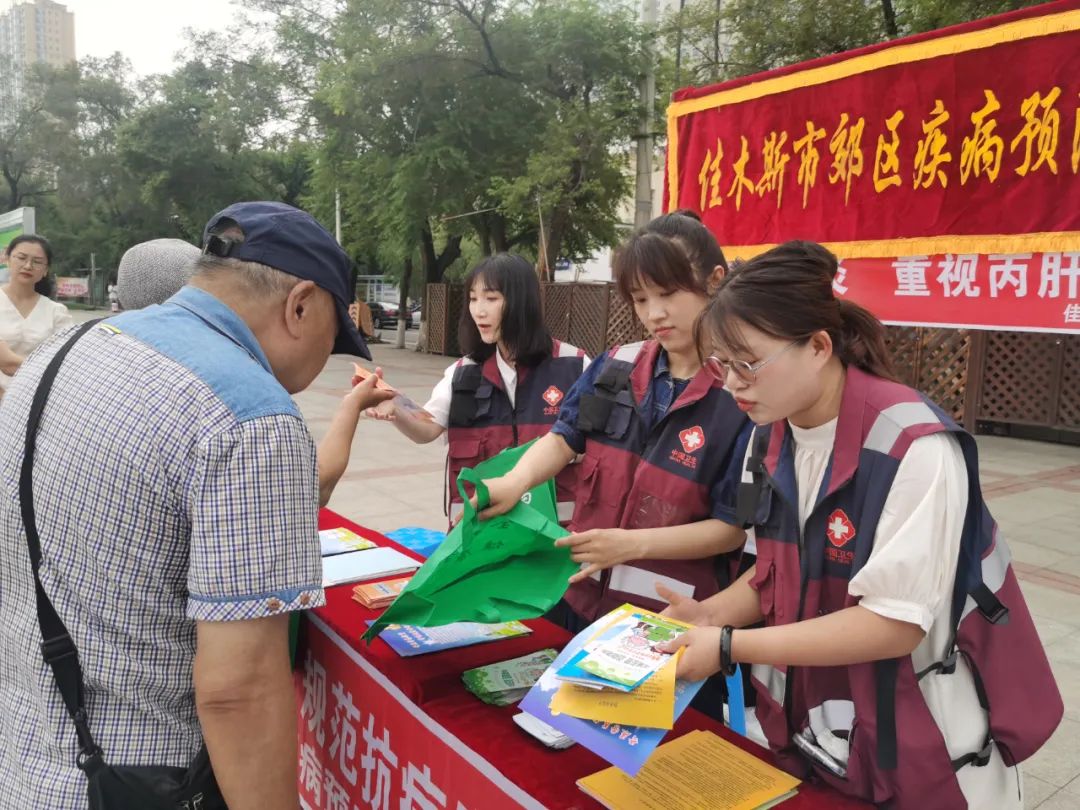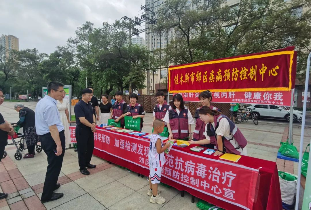 2023年7月28日是第13个“世界肝炎日”,为进一步加强居民对肝炎防治问题的关注,号召公众积极主动接种肝炎疫苗,主动进行体检了解肝脏健康状况,慢性病毒性肝炎患者接受规范的抗病毒治疗,全面遏制病毒性肝炎对人类健康的威胁,7月28日,郊区疾控中心在佳木斯沿江公园开展以“坚持早预防,加强检测发现,规范抗病毒治疗”主题宣传活动。