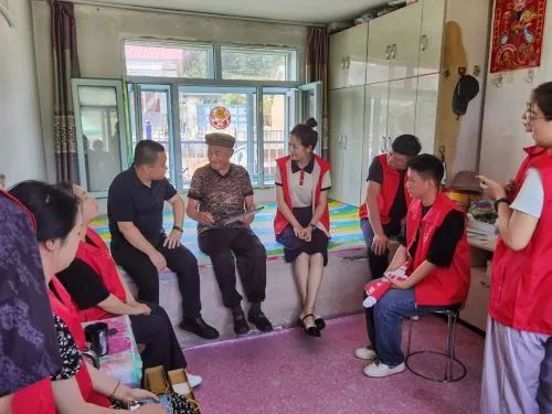 大学生们到大来镇达勒沟村高德才的家中,为他送去祝福与慰问品。高德才曾经担任中央警卫员,他讲述的在吉林战役、四平战役中带领战士们阻击敌人、突出重围、在国旗护卫队和中南海警卫队时期的红色故事。