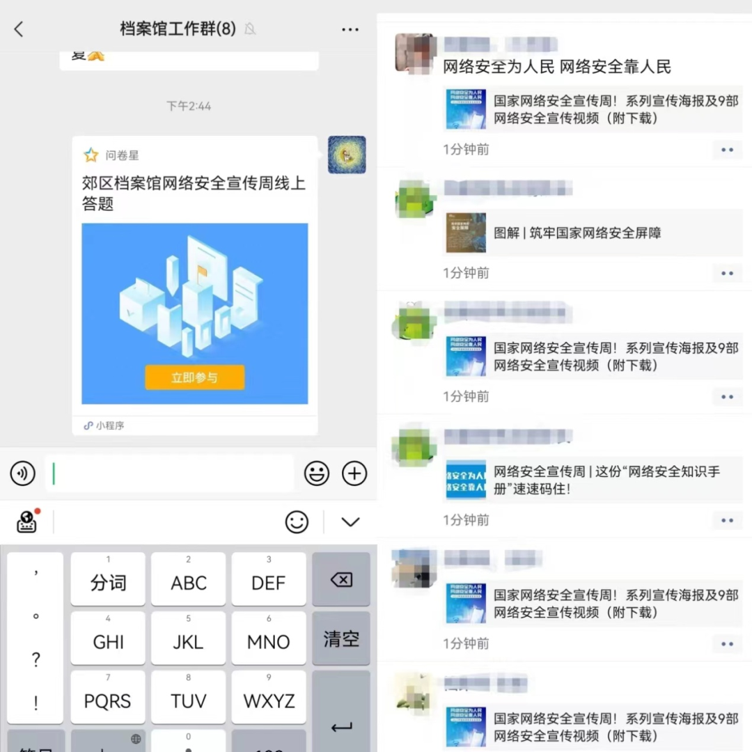 郊区档案馆通过张贴宣传海报和转发宣传视频的方式向群众普及身边的网络安全风险,真正提高广大居民的网络安全意识和能力,共同维护网络安全。
