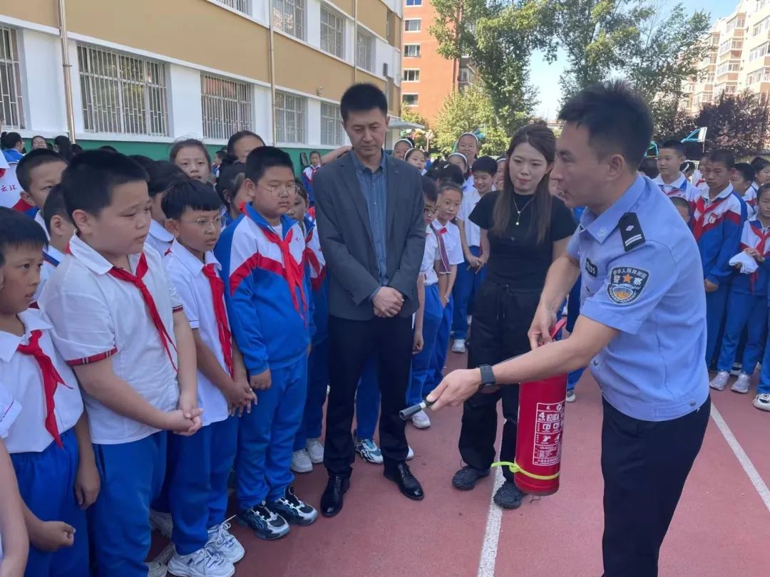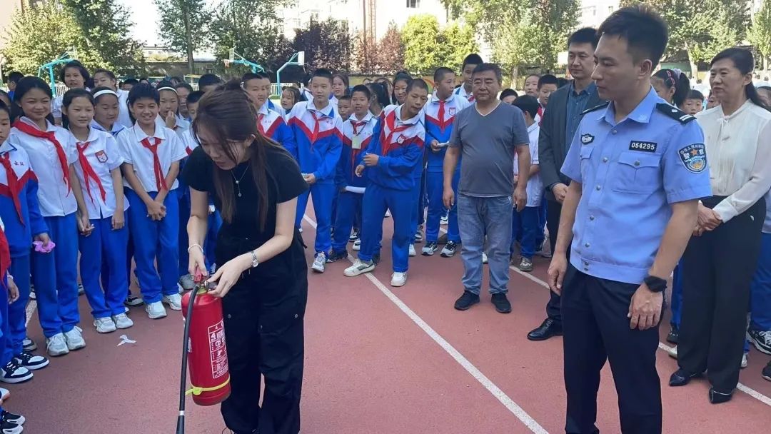 活动中,民警以实际案例为出发点结合校园易发生火灾的特点,现场讲解了开展校园消防安全演练的重要性和必要性,为学生讲解预防火灾、安全疏散、逃生自救等消防安全知识,要求全体师生务必要提高消防安全意识,掌握基本自防自救安全知识,切实做到防患于未然。随后,民警组织师生在操场上进行消防器材现场教学演练,详细讲解消防器材的种类和灭火器的正确使用方法。同时,现场指导在校师生进行实际操作演练,确保遇到突发情况时能够保障自身安全。