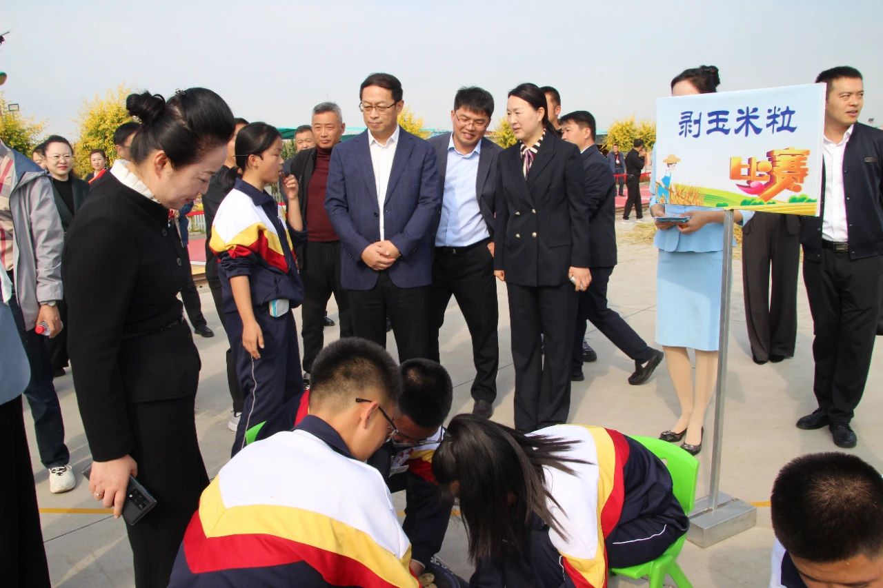 此次活动我区莲江口中学、莲江口小学、望江中学、望江小学4所学校300余名师生参加现场展示。在阳光房,郊区教育局、郊区进修学校各及中小学共同研发的《郊区中小学劳动教育实践手册》得到了领导们的一致好评,莲江口中学进行了“品尝暖心玉米、收获金色快乐”活动,同学们用栩栩如生的语言介绍了玉米的一生、玉米的种子结构,并现场制作各种玉米美食及玉米工艺品供大家品尝、欣赏。在劳动基地大棚,莲江口小学和望江中、小学的解说员生动直观的讲述了西瓜、小葱、豆角等农作物的种植过程、生长过程及农具的用途,同学们展示了劳动实践的过程。在劳动竞赛现场,莲江口中学的同学们参加了既有考验动手能力的剥玉米粒、编草帘项目,也参加了考验合作能力的打豆子、捆水稻项目,比赛现场热火朝天,活动妙趣横生。在豆浆研磨项目中,莲江口中学的同学们充分展现出手操能力和细心程度,得到了领导们的一致肯定。