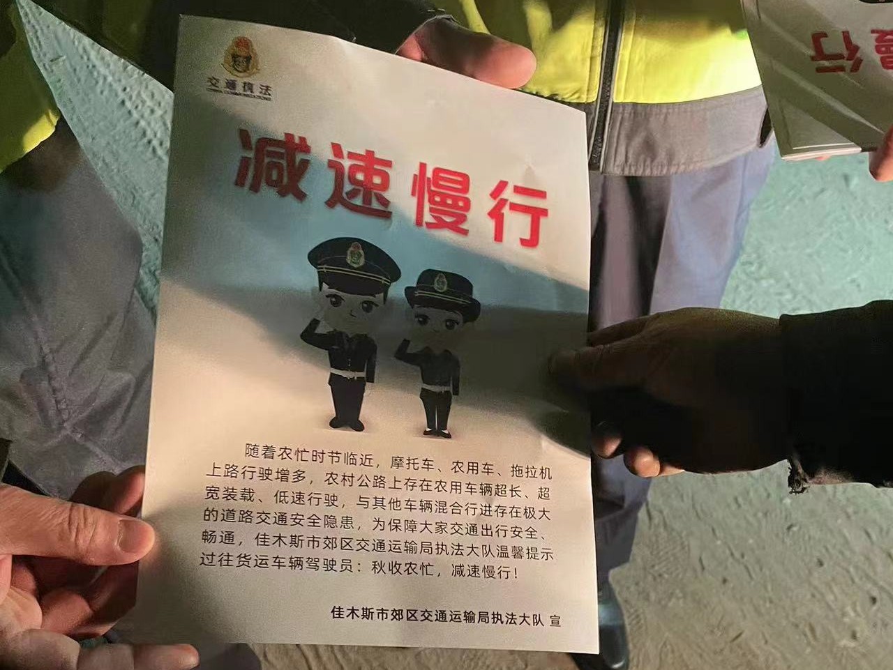 执法队提前谋划、提早布置,采取说理式执法和宣传等有效形式,对过往运输车辆发放宣传单,耐心说服讲解,进一步增强广大司机的自觉性,提高安全意识。同时,加大巡查力度,采取错时执法和集中巡查相结合的方式,对极易发生事故的重点路段、重点部位,加大巡查和管控力度,切实保障辖区农村道路安全畅通,杜绝安全隐患。