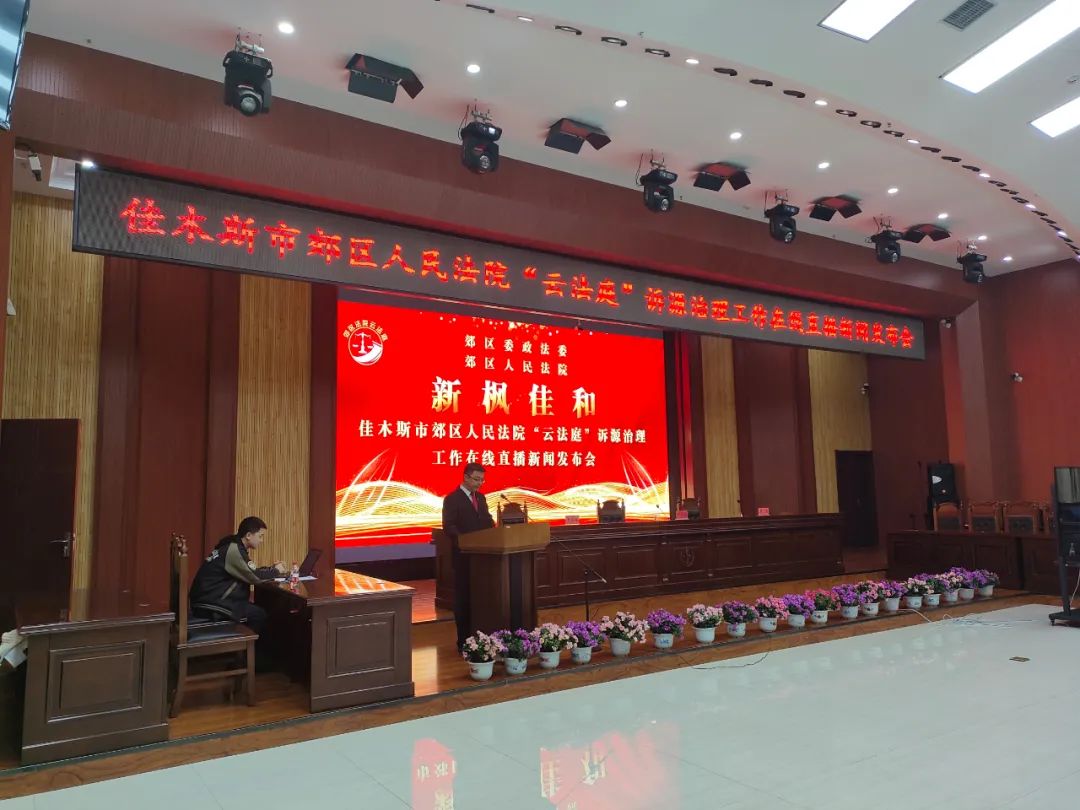 来自区、乡镇、社区的综治干部们现场参与新闻发布会,直播现场座无虚席。法治日报、黑龙江日报、佳木斯日报、佳木斯市广播电视台等数位媒体记者线上线下同时参与“云”直播,观众们可通过手机app在抖音、快手平台实时收看发布会直播,10月23日下午两点,全省法院首家“云法庭”诉源治理工作线上新闻发布会在郊区人民法院举行!