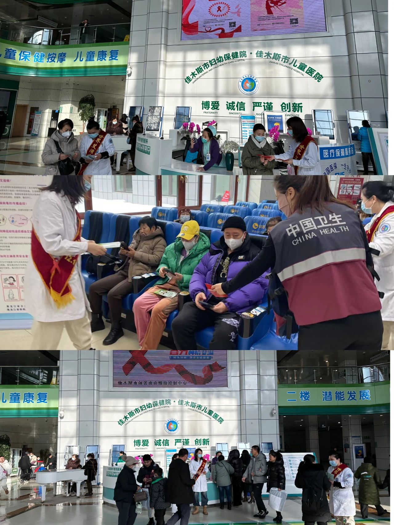 区疾病预防控制中心合力佳木斯市妇幼保健院、佳木斯大学附属口腔医院、佳木斯大学宏大医院、各级卫生医疗机构以多种形式开展艾滋病防治宣传活动,对就诊患者现场发放宣传材料和宣讲艾滋病相关知识,使群众了解预防艾滋病的重要意义。