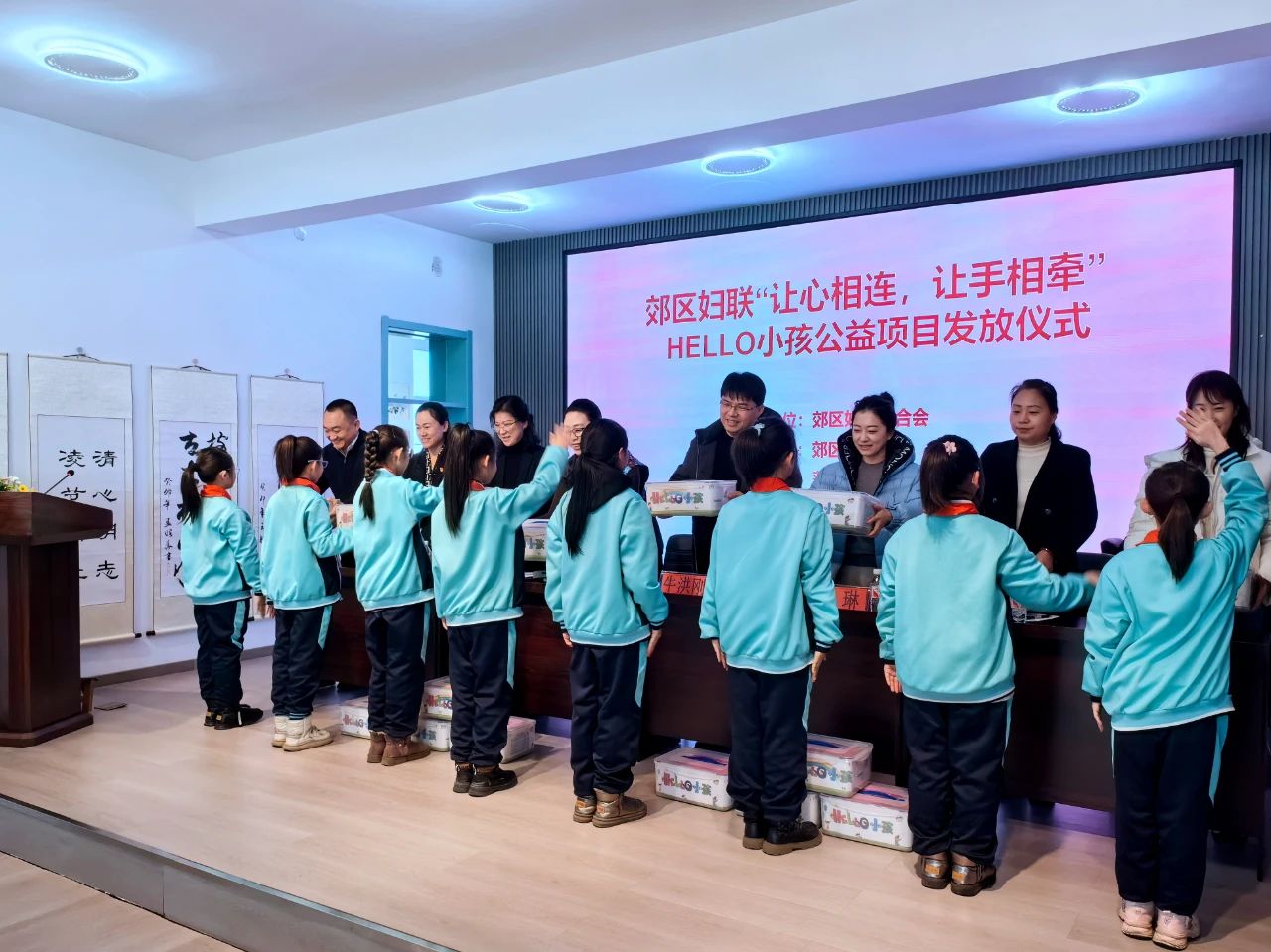 为进一步贯彻落实党的二十大精神,12月14日,郊区妇联携手中国儿童少年基金会“HELLO小孩”公益项目爱心套餐发放仪式在郊区莲江口中心小学举行。市妇联副主席王琳娜,区妇联、区教育局等有关部门同志参加仪式。