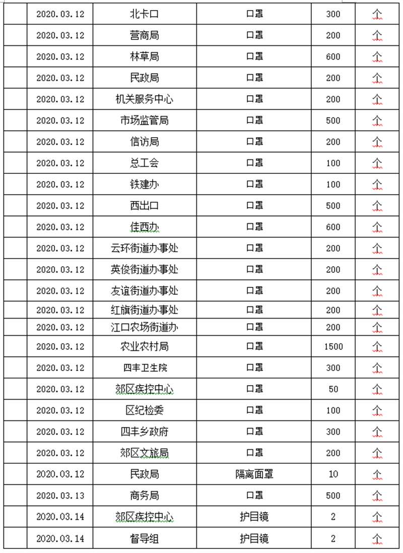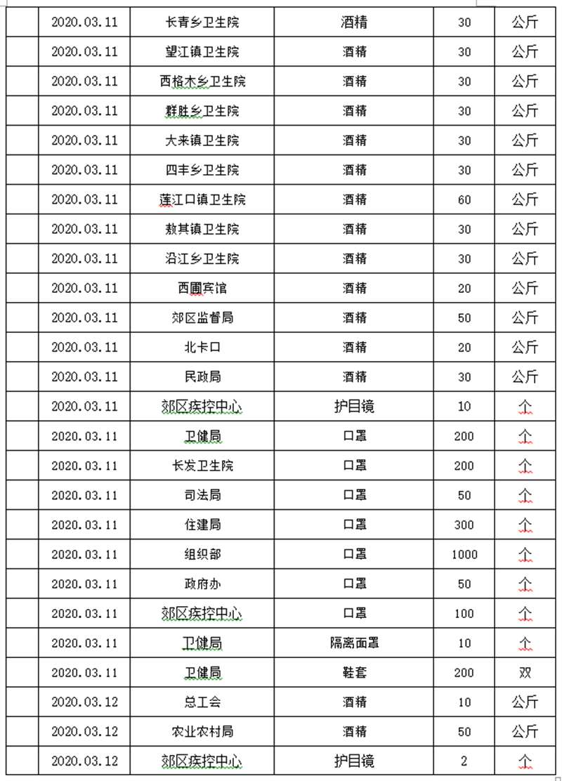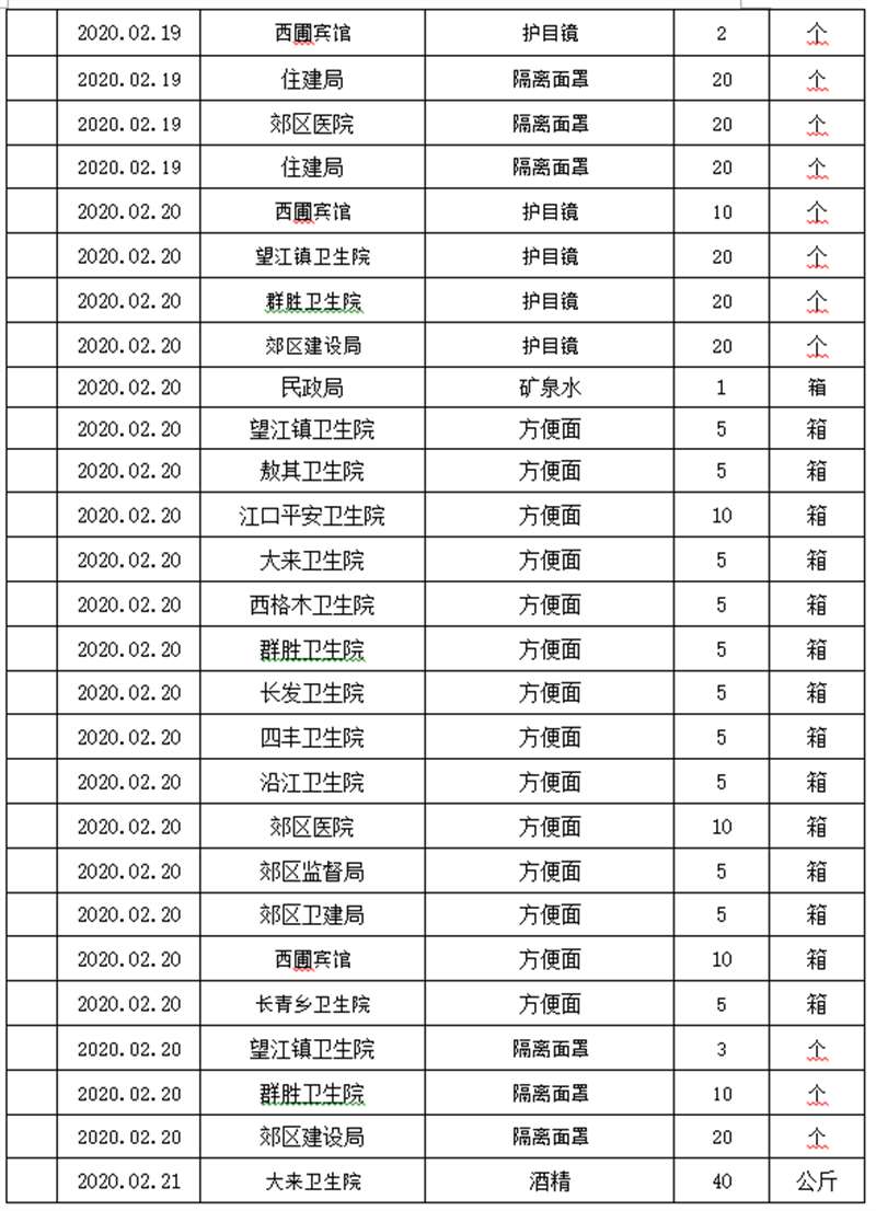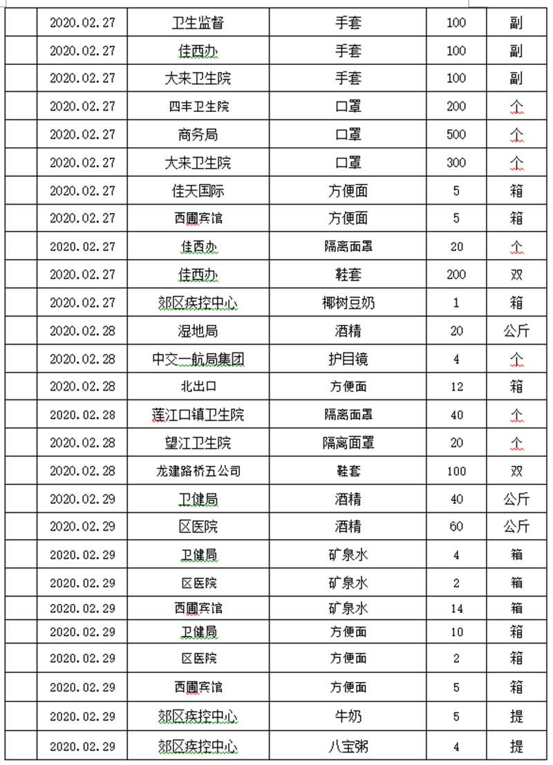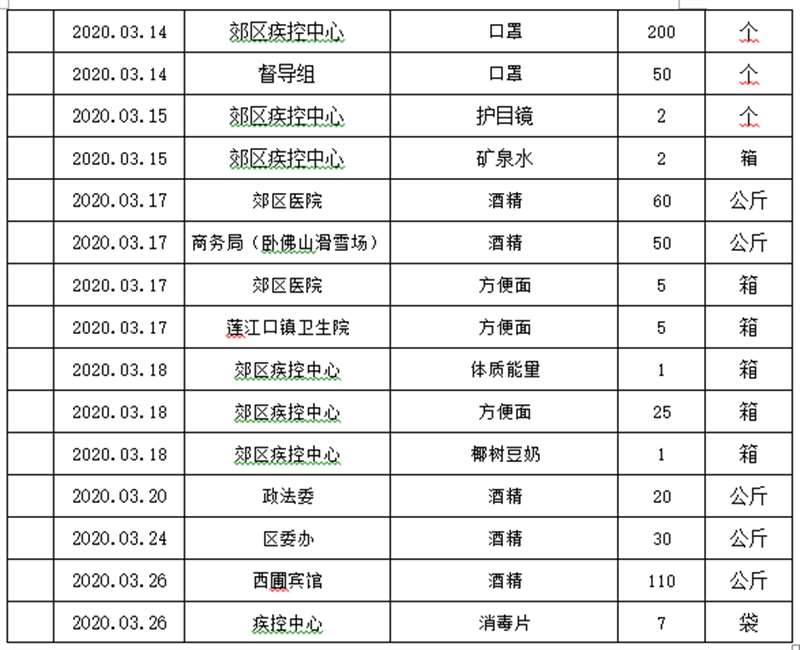 郊区疾病预防控制中心发放社会捐赠物资一览表