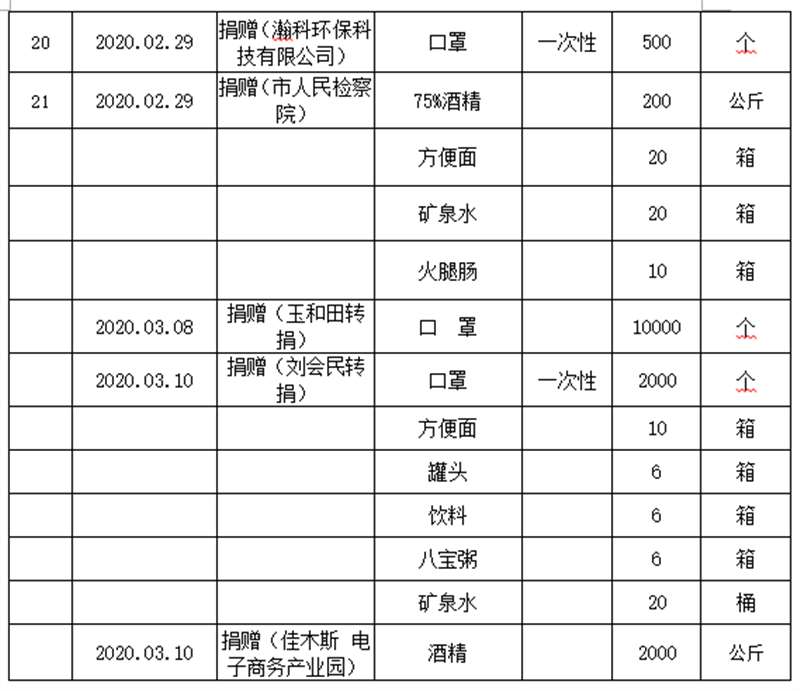 郊区疾病预防控制中心接受社会捐赠物资一览表