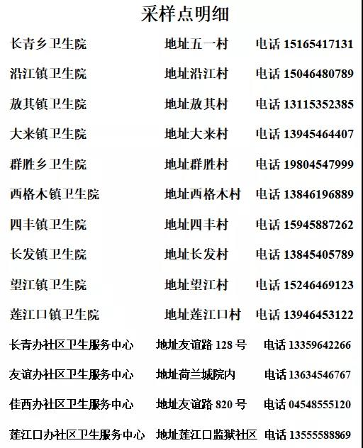 为全面提升疫情防控应急处置能力,加快全员核酸检测响应速度,我区于11月4日17时开展全员核酸检测应急演练,本次演练共设置14个核酸采样点(采样点明细附后),检测对象为辖区内企事业单位食堂、餐饮(含为中小学配餐公司,包括送餐司机)、快递企业的所有从业人员,为保证演练工作顺利开展,疫苗接种暂停1天,本次核酸检测演练参演范围广,参演车辆多,请广大居民朋友们不要惊慌失措、更不要造谣传谣,保持正常的工作和生活秩序,避免造成不良影响,请参加演练人员服从安排,有序配合医务人员进行核酸检测,确保本次演练圆满成功。感谢广大居民朋友们的理解、支持与配合!让我们共同努力守护好我们的美好家园!